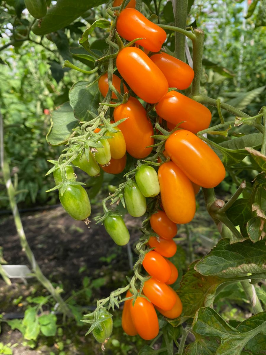 Очаровательно красивый и невероятно плодовитый индетерминантный томат черри. Вытянутые, как крохотные «дамские пальчики», сочно оранжевые помидорки с плотной мякотью отличного, очень сладкого вкуса. Если закрыть глаза, то можно представить, что кушаешь фрукт. На каждой кисти 20-25 плодов, которые не трескаются и не опадают, так что урожай можно собирать целыми кистями. Подходит для открытого грунта, плёночных теплиц и для выращивания в больших горшках на балконе. Устойчив к самым распространённым болезням томатов.