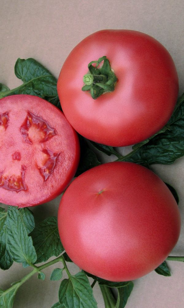 Отличный вкус розовых плодов для салата и томатного сока. Для открытого грунта и плёночных теплиц. Среднеспелый сорт. Период от всходов до начала созревания 110-115 дней. Растение высотой до 60 см. Плод округлый, слаборебристый, средней плотности. Окраска незрелого плода зелёная с маленьким тёмным пятном у плодоножки, зрелого - розовая. Число гнезд 4-6. Масса 95-110 г. Сорт отличается стабильным высоким урожаем, высокой устойчивостью к болезням. Отличные вкусовые качества свежих плодов и томатного сока. Универсальное использование.