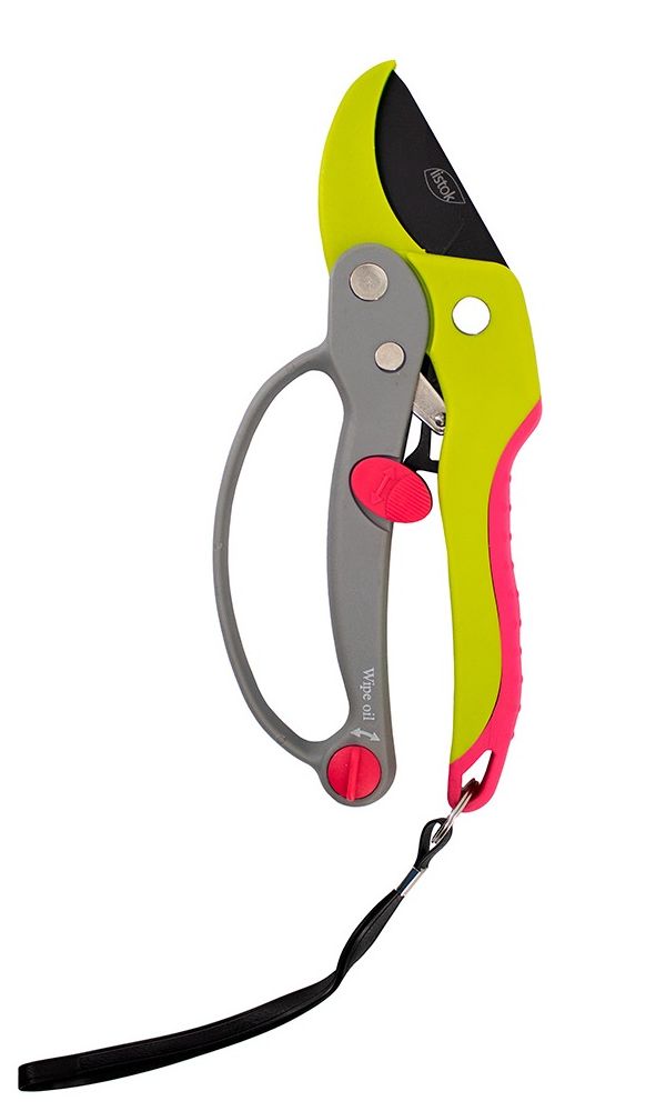 Идеально подходит для применения в саду. Обеспечивает удобное и ровное срезание. Тефлоновая поверхность лезвия обеспечивает легкость хода и защиту от коррозии. Рукоятка секатора имеет удобный сдерживающий ремешок.