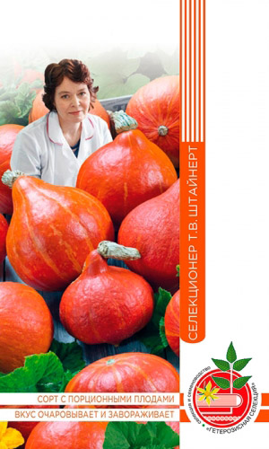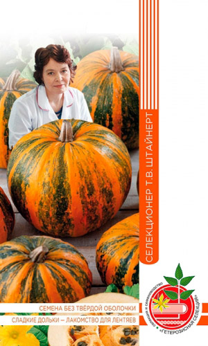 Среднеспелый сорт крупноплодной тыквы. Плоды серые, сплюснутой формы, сильно сегментированы. Мякоть насыщенно-оранжевого цвета, толстая, сладкая, содержит повышенное количество каротина и аскорбиновой кислоты. Ценность сорта: высокая урожайность, хорошая лёжкость, отличные вкусовые качества. Прекрасно подходит для детского и диетического питания, приготовления сладких десертов, соков, пюре. ...