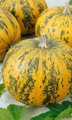 Один из самых вкусных сортов. Плоды плоскоокруглые, сегментированные, массой 3-8 кг. Мякоть интенсивно-оранжевая, толстая, плотная, сочная, сладкая, с лёгким мускатным ароматом. Сладость и аромат при хранении усиливаются. Ценится за предельно высокое содержание каротина, целебные свойства, хорошую лёжкость. Лучшая тыква для сока, пюре и десертов – цукатов, повидла, пирогов и свежих салатов...