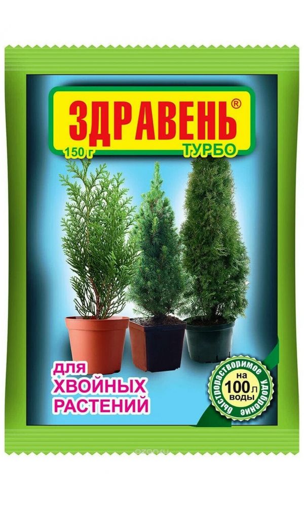 Гарантирует правильное, гармоничное развитие растения;повышает качество, густоту и насыщенность окраски хвои;укрепляет корневую систему.Корневую подкормку следует производить путем полива растений. При этом рекомендуется растворять удобрение «Здравень» в тёплой или...