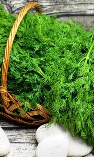 Невероятно урожайный, среднепоздний, сильнооблиственный сорт. Растения кустовые, компактные, высотой 120 см, Лист крупный, зеленый, сильнорассеченный. Масса одного растения при уборке на зелень 20-25 г, на специи – 55-60 г.