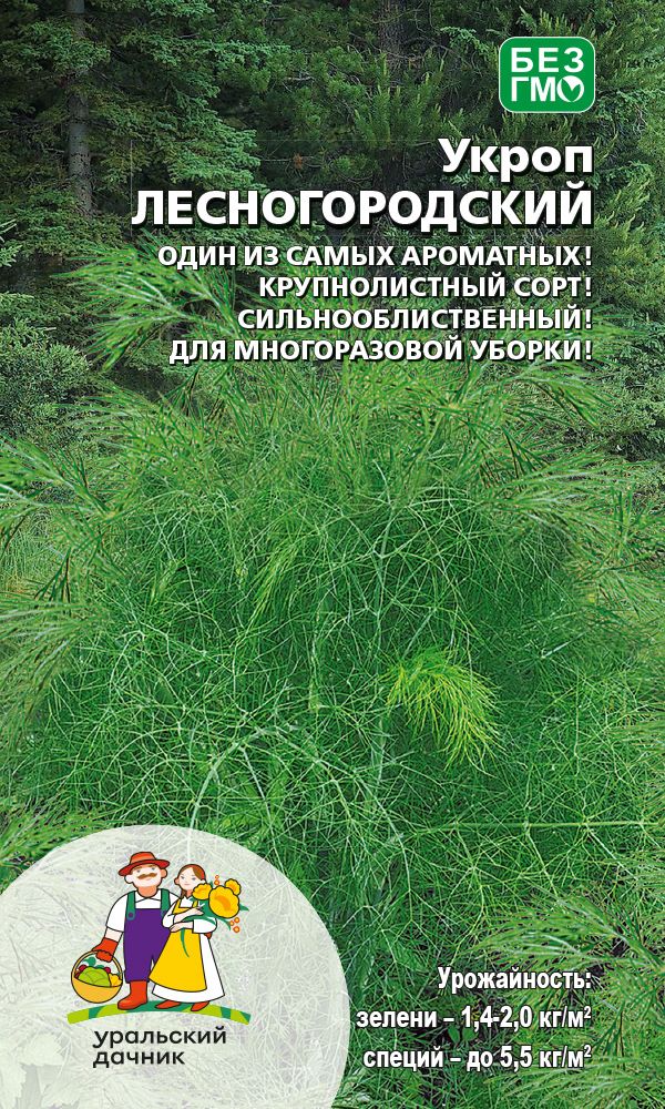 Уникальный сорт укропа, формирующий мощный облиственный куст. Листья крупные, длина 28-36 см, ширина 30-36 см, зелёные с восковым налетом. Растение долго не цветёт, образует мощные пушистые ветви. Хорошо подходит для подзимнего посева. Молодые растения переносят весенние возвратные заморозки. Урожай зелени составляет 2,8-6,0 кг/м2. Рекомендуется для использования в свежем виде, сушки, соления, замораживания. Семена используются в качестве специи при засолке и мариновании...