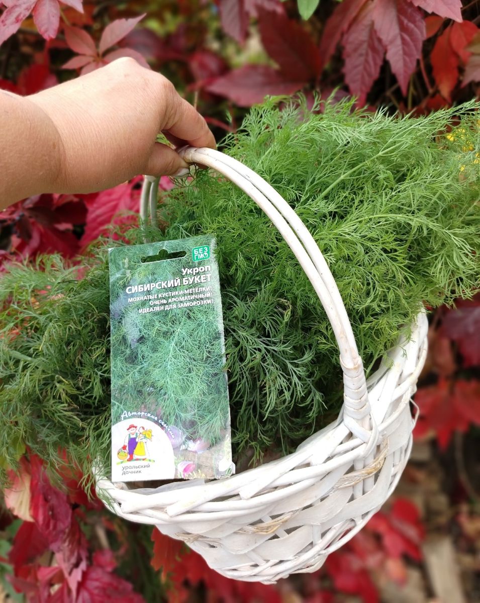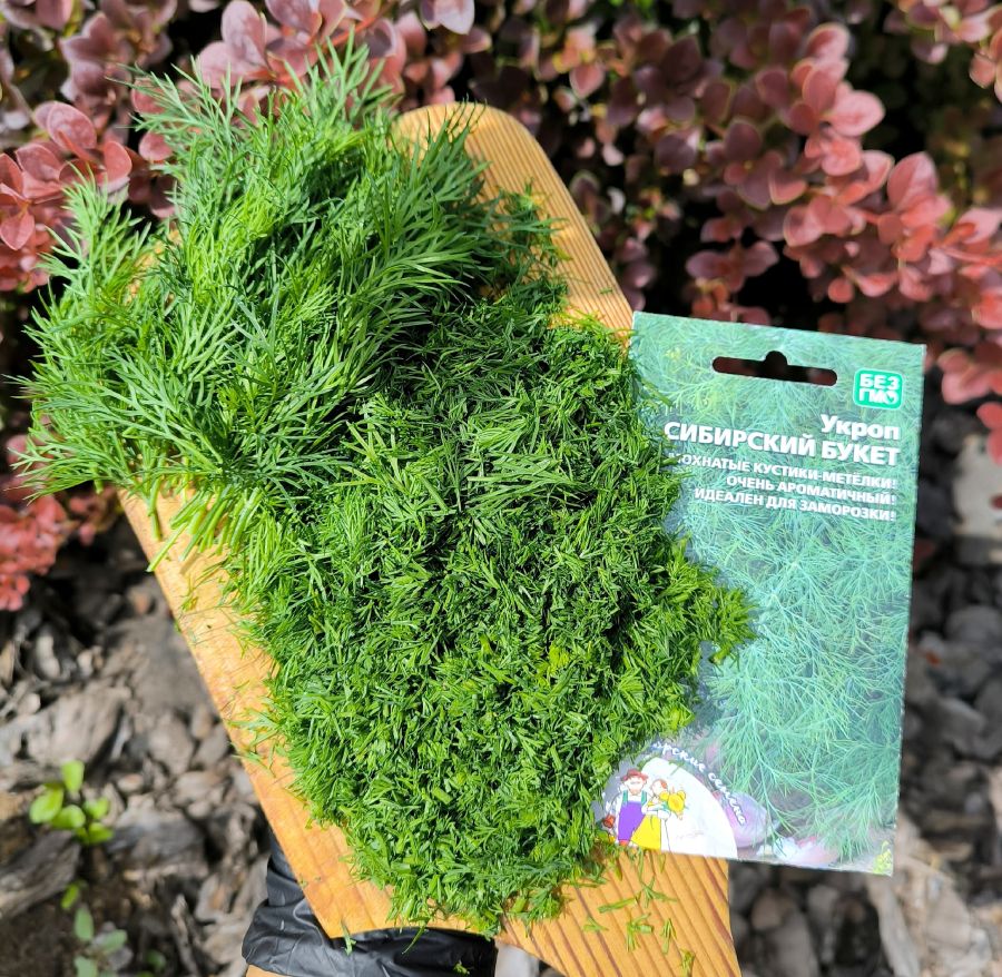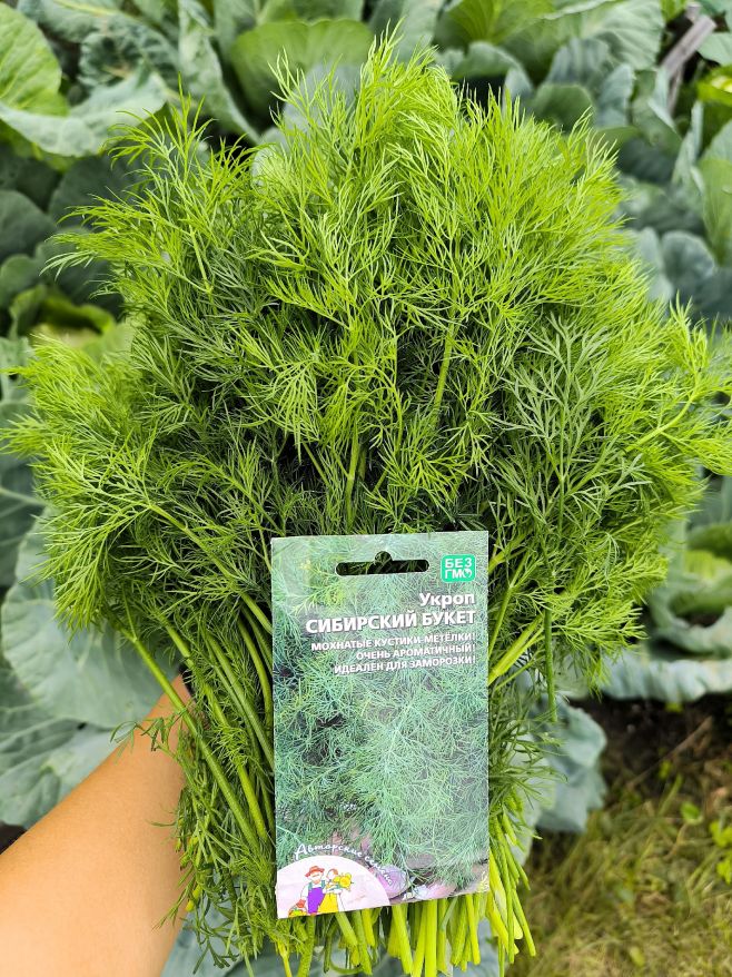 Уникальный сорт укропа, формирующий мощный облиственный куст. Листья крупные, длина 28-36 см, ширина 30-36 см, зелёные с восковым налетом. Растение долго не цветёт, образует мощные пушистые ветви. Хорошо подходит для подзимнего посева. Молодые растения переносят весенние возвратные заморозки. Урожай зелени составляет 2,8-6,0 кг/м2. Рекомендуется для использования в свежем виде, сушки, соления, замораживания. Семена используются в качестве специи при засолке и мариновании...