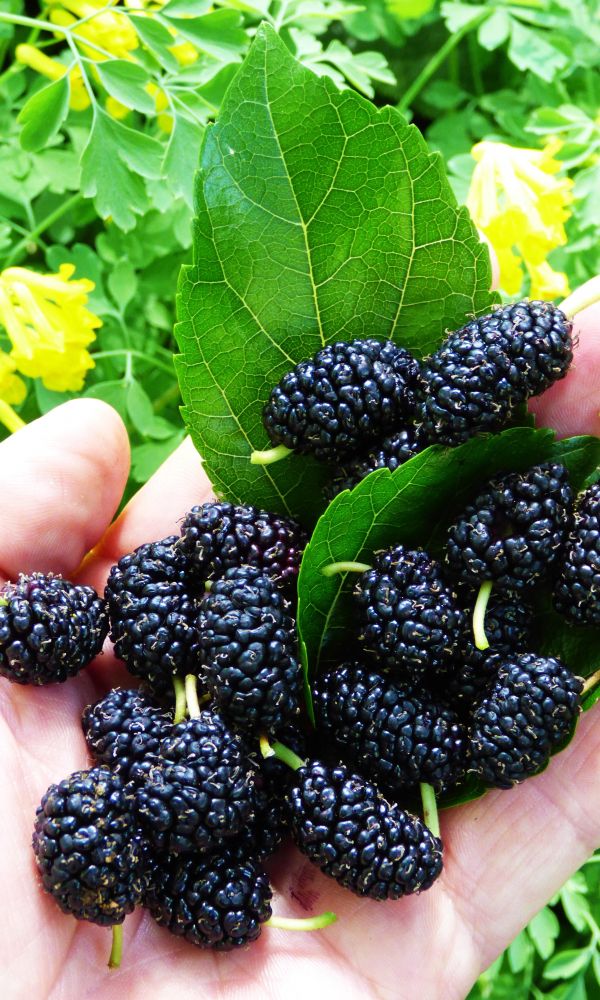 Крона густая, шаровидная. Очень интересны её листья: разнообразной конфигурации и величины даже на одном дереве от цельных до лопастных. Довольно декоративны: соплодия сладкие, съедобные, белой окраски, слегка напоминающие по внешнему виду малину или ежевику. Хорошо...