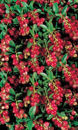 Вечнозеленый многолетний стелющийся полукустарник, высотой 25-30 см. Листья кожистые, темно-зеленые, блестящие, цветки бледно-розовые. Ягоды округлые, светло-красные, массой 0,5 г, кисло-сладкого, освежающего вкуса. С одного куста можно получить до 600 г ягод. Многочисленные плоды брусники обладают огромным запасом витаминов и могут использоваться как для консервирования, так и для потребления в свежем виде.