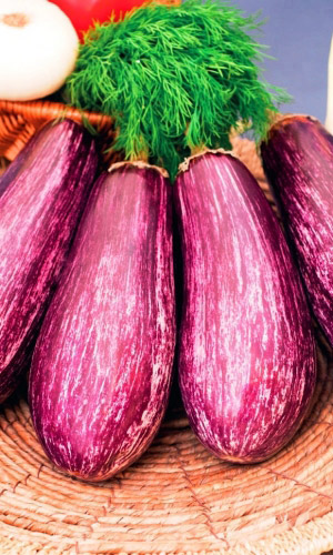 Раннеспелый высокоурожайный сорт для выращивания в открытом грунте и плёночных укрытиях. Плоды крупные, цилиндрической формы, пурпурного цвета, с белыми штрихами, массой до 300 г. Мякоть плотная, белая, без горечи. Растение хорошо завязывает плоды даже в неблагоприятных условиях. Сорт предназначен для консервирования, домашней кулинарии и приготовления икры...